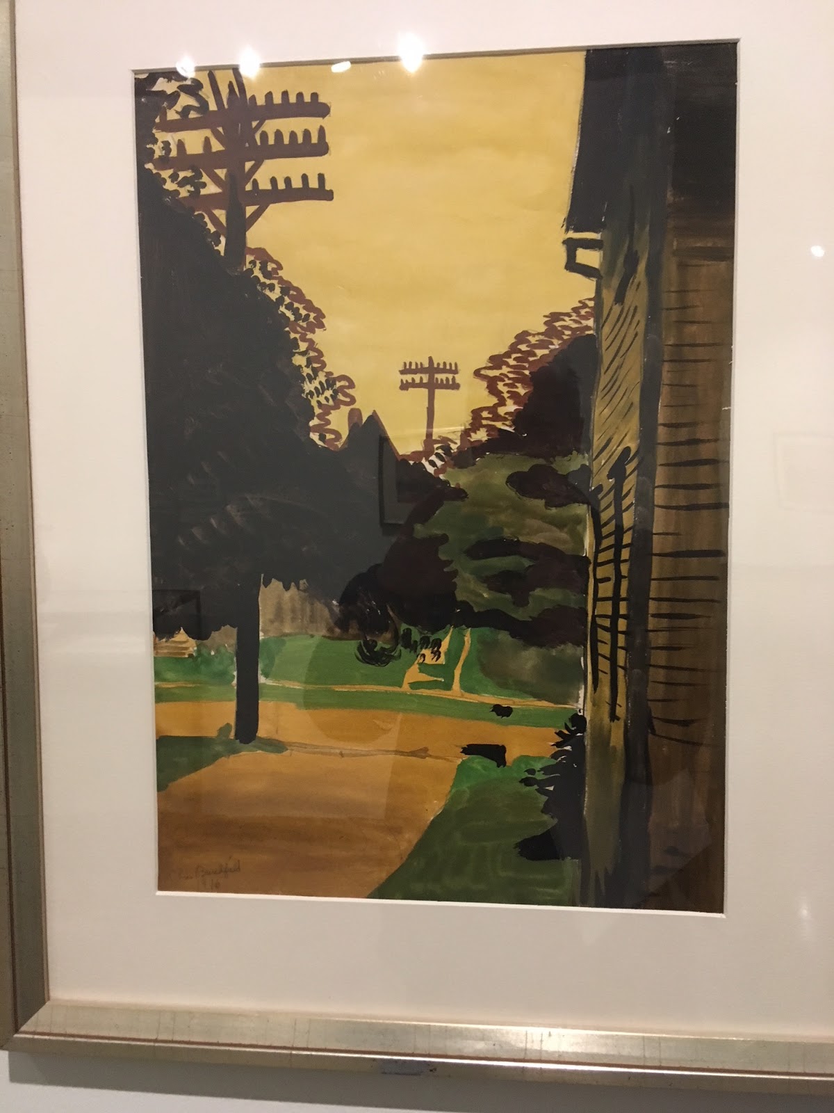 Inness was renown for his uniquely moody and introspective landscapes. In some ways Burchfield was cut from the same sort of cloth. He created works that grew out of that romantic, visionary tradition. Happily, MAM has hung Weather Event in galleries adjoining their Inness Collection.