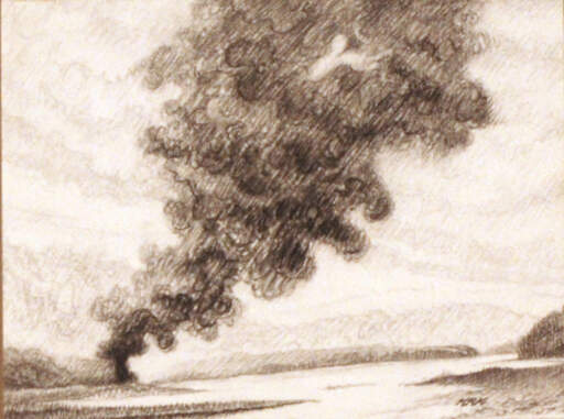 Kenneth G. Klier (1933-2006), Smoke-Tainted Sky, 1967; graphite on paper, Overall: 6 x 8 in. (15.2 x 20.3 cm) Frame: 12 1/4 x 14 1/4 in. (31.1 x 36.2 cm); The Charles Rand Penney Collection of Western New York Art at the Burchfield Art Center, 1991