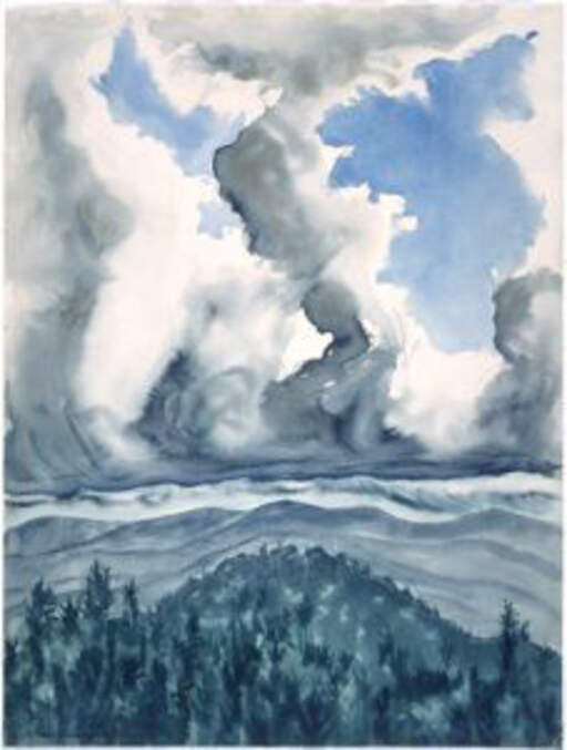 Charles E. Burchfield (1893-1967), Moon and Cumulus Cloud (Thunder Clouds), July 13, 1916; Transparent and opaque watercolor with graphite on white watercolor paper, 19 15/16 x 13 7/8 inches; Munson Museum of Art, Edward W. Root Bequest, 57.102