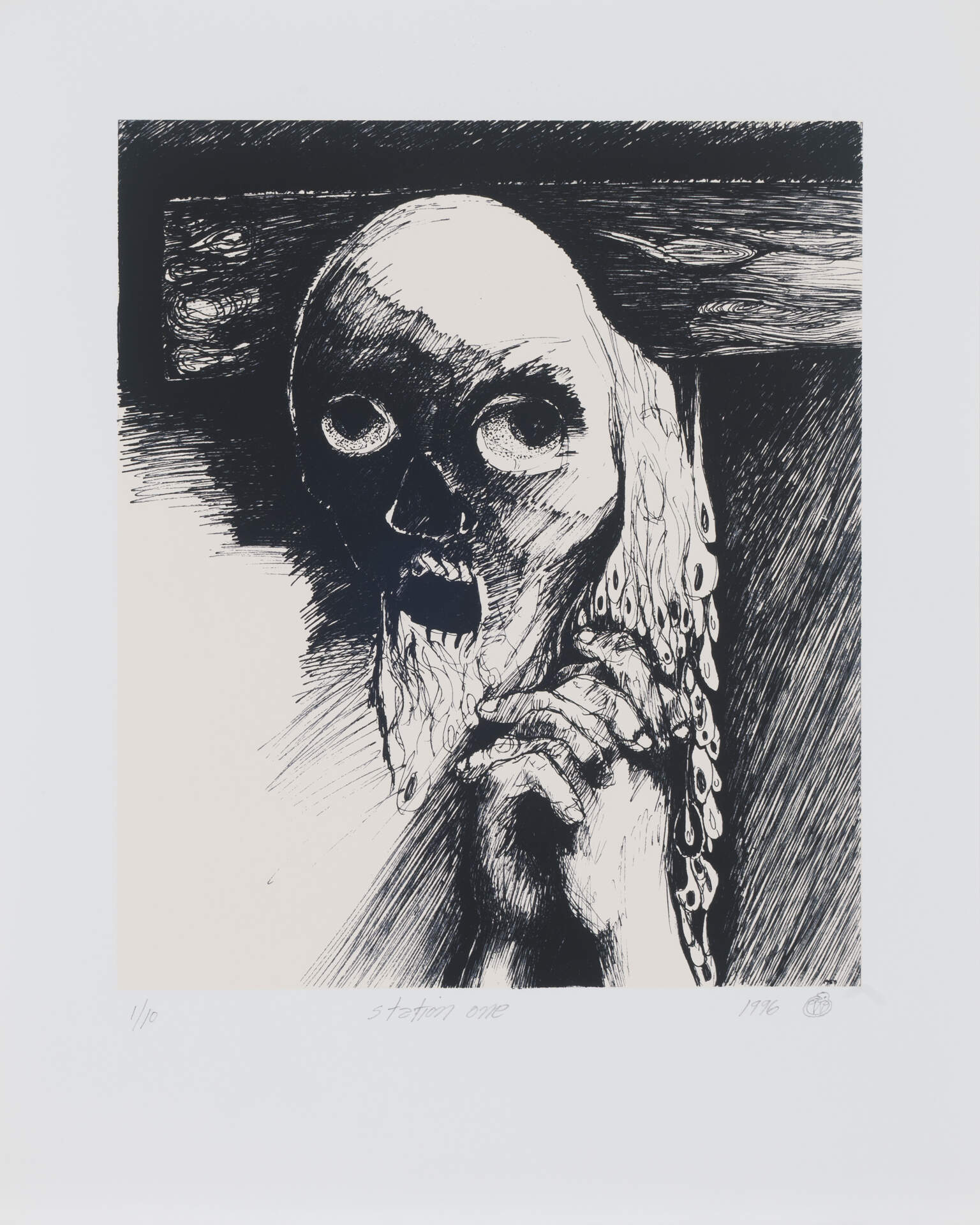 Westley Olmsted (1934-2011), 14 Stations of the Cross, 1996; screen prints on Stonehenge paper 1 of 10, 14 x 18 inches; Gift of the Wes and Gloria Olmsted, 2004
