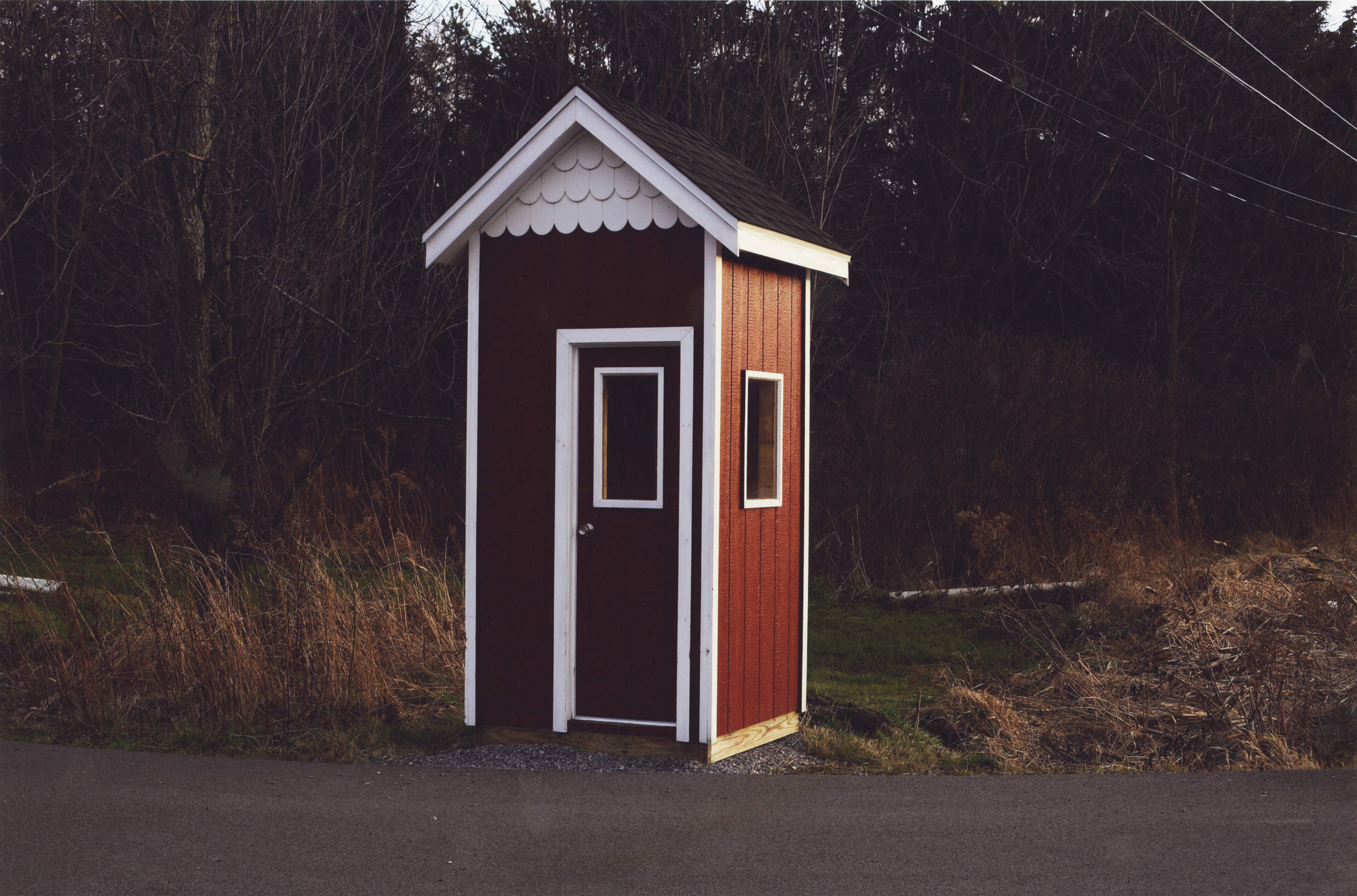 The Mistake by the Lake [brown shelter with white scalloped trim]