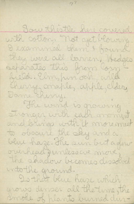 The front cover in this image is a part of Burchfield's "Journal 17". The journal itself was written on a commercially-made lined paper notebook and consists of 118 pages. It also contains untitled magazine clipping with articles “A Flag-Carrying Ant” [author unknown] and “A Queer Pet” by Helen Ross Laird. It was gifted to the Burchfield Penney Art Center by the Charles E. Burchfield Foundation in 2000.