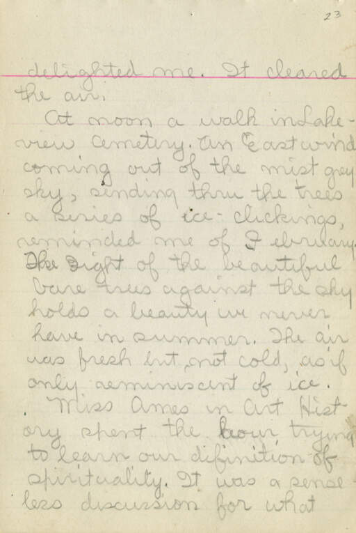 Charles E. Burchfield (1893-1967), Untitled (Journal Pg 23), January 12, 1915; graphite on lined paper, 5 7/8 x 3 7/8 inches; Burchfield Penney Art Center courtesy of the Charles E. Burchfield Foundation, 2000