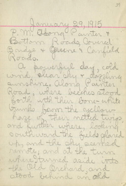 Charles E. Burchfield (1893-1967), Untitled (Journal Pg 39), January 29, 1915; graphite on lined paper, 5 7/8 x 3 7/8 inches; Burchfield Penney Art Center courtesy of the Charles E. Burchfield Foundation, 2000