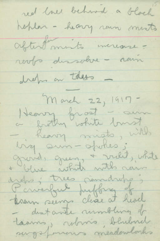 Charles E. Burchfield (1893-1967), Volume 30, Page 15, March 21, 1917 - March 22, 1917; commercially bound notebook, 5 ¾ x 3 ¾ inches; Gift of the Charles E. Burchfield Foundation, 2000