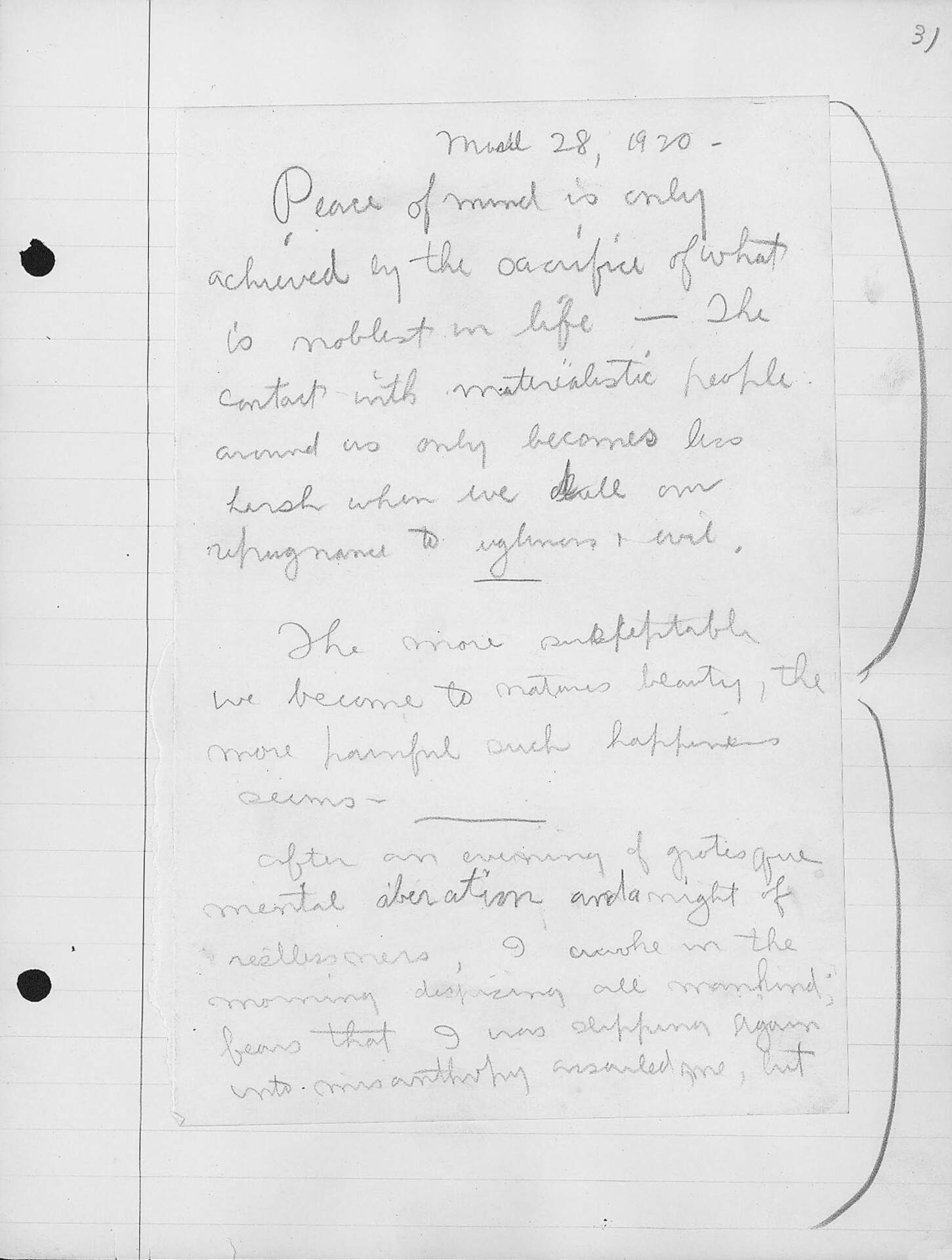 Peace of mind is only achieves by the sacrifice of what is noblest in life – the contact with materialistic people around us only becomes less harsh when we dull our repugnance to ugliness & evil.