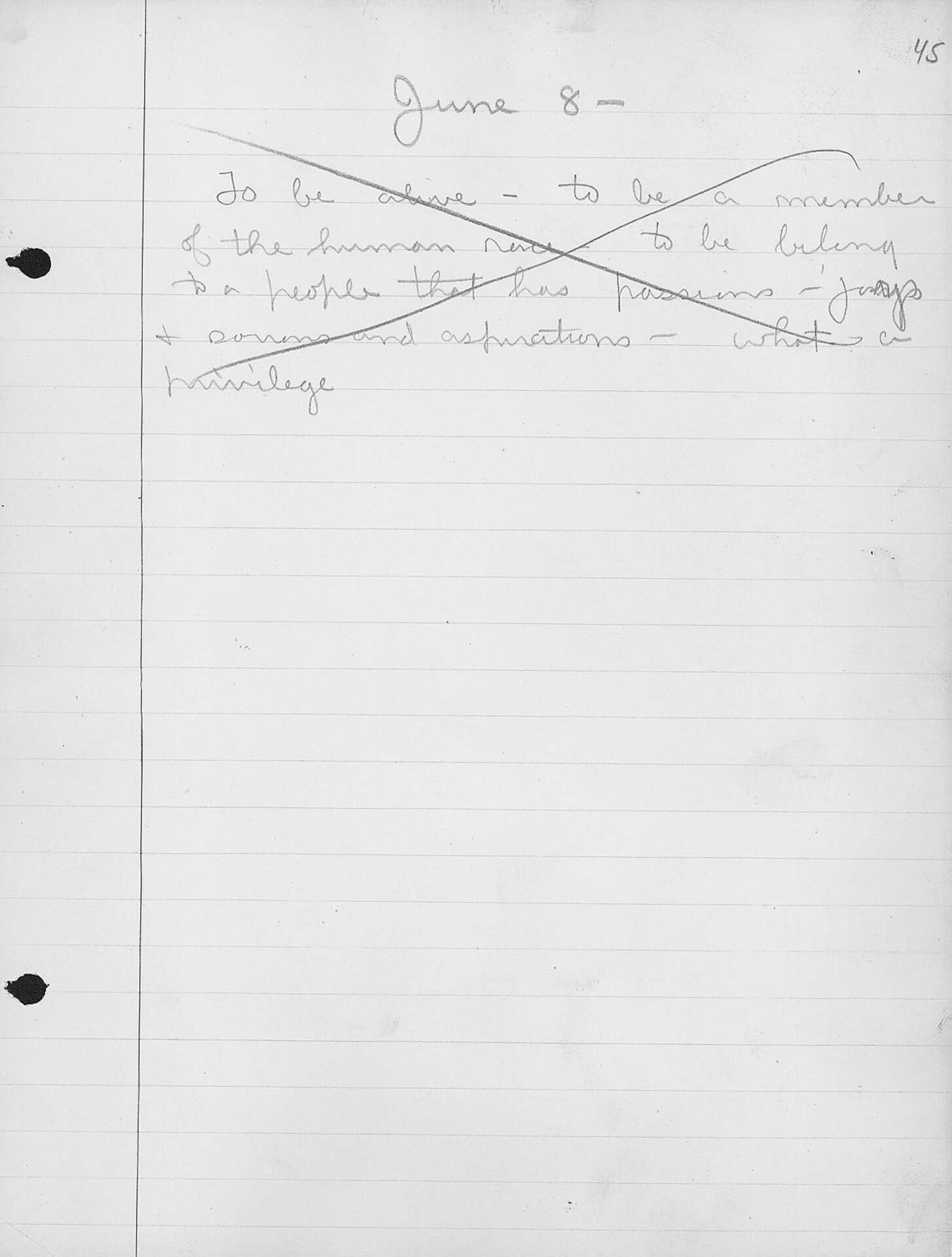 June 8 – To be alive – to be a member of the human race – to be belong to a people that has passions – joys & sorrows and aspirations – what a privilege