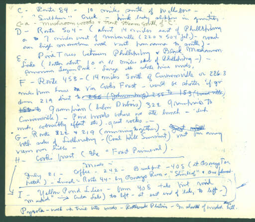 Charles E. Burchfield (1893-1967), Untitled (Journal Page), Pg 32, May 22, 1947 - May 24, 1947; graphite pencil and blue ink on unlined paper, 9 1/2 x 11 3/4 inches; Burchfield Penney Art Center courtesy of the Charles E. Burchfield Foundation, 2000
