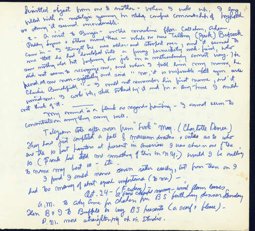 Charles E. Burchfield (1893-1967), Untitled (Journal Page), Pg 24, May 5, 1947; blue ink on unlined paper, 9 1/2 x 11 3/4 inches; Burchfield Penney Art Center courtesy of the Charles E. Burchfield Foundation, 2000