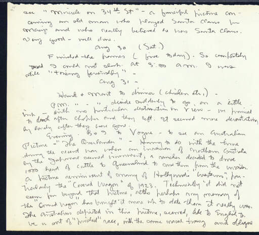 Charles E. Burchfield (1893-1967), Untitled (Journal Page), Pg 92, August 29, 1947 - August 31, 1947; ink on unlined paper, 9 1/2 x 11 3/4 inches; Burchfield Penney Art Center courtesy of the Charles E. Burchfield Foundation, 2000