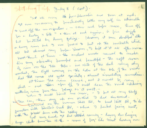 Charles E. Burchfield (1893-1967), Untitled (Journal Page), Pg 56, July 8, 1947 - July 10, 1947; graphite pencil and blue ink on unlined paper, 9 1/2 x 11 3/4 inches; Burchfield Penney Art Center courtesy of the Charles E. Burchfield Foundation, 2000