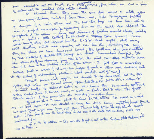 Charles E. Burchfield (1893-1967), Untitled (Journal Page), Pg 34, May 27, 1947 - May 30, 1947; graphite pencil and blue ink on unlined paper, 9 1/2 x 11 3/4 inches; Burchfield Penney Art Center courtesy of the Charles E. Burchfield Foundation, 2000
