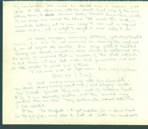 Charles E. Burchfield (1893-1967), Untitled (Journal Page), Pg 75, July 24, 1947 - July 25, 1947; graphite pencil on unlined paper, 9 1/2 x 11 3/4 inches; Burchfield Penney Art Center courtesy of the Charles E. Burchfield Foundation, 2000