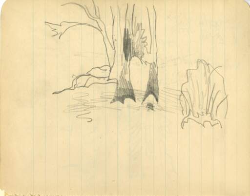 Charles E. Burchfield (1893-1967), Two trees with shadow and bush, January 1917; graphite on paper, 8 x 6 1/2 inches; Charles E. Burchfield Foundation Archives, Gift of the Charles E. Burchfield Foundation, 2006