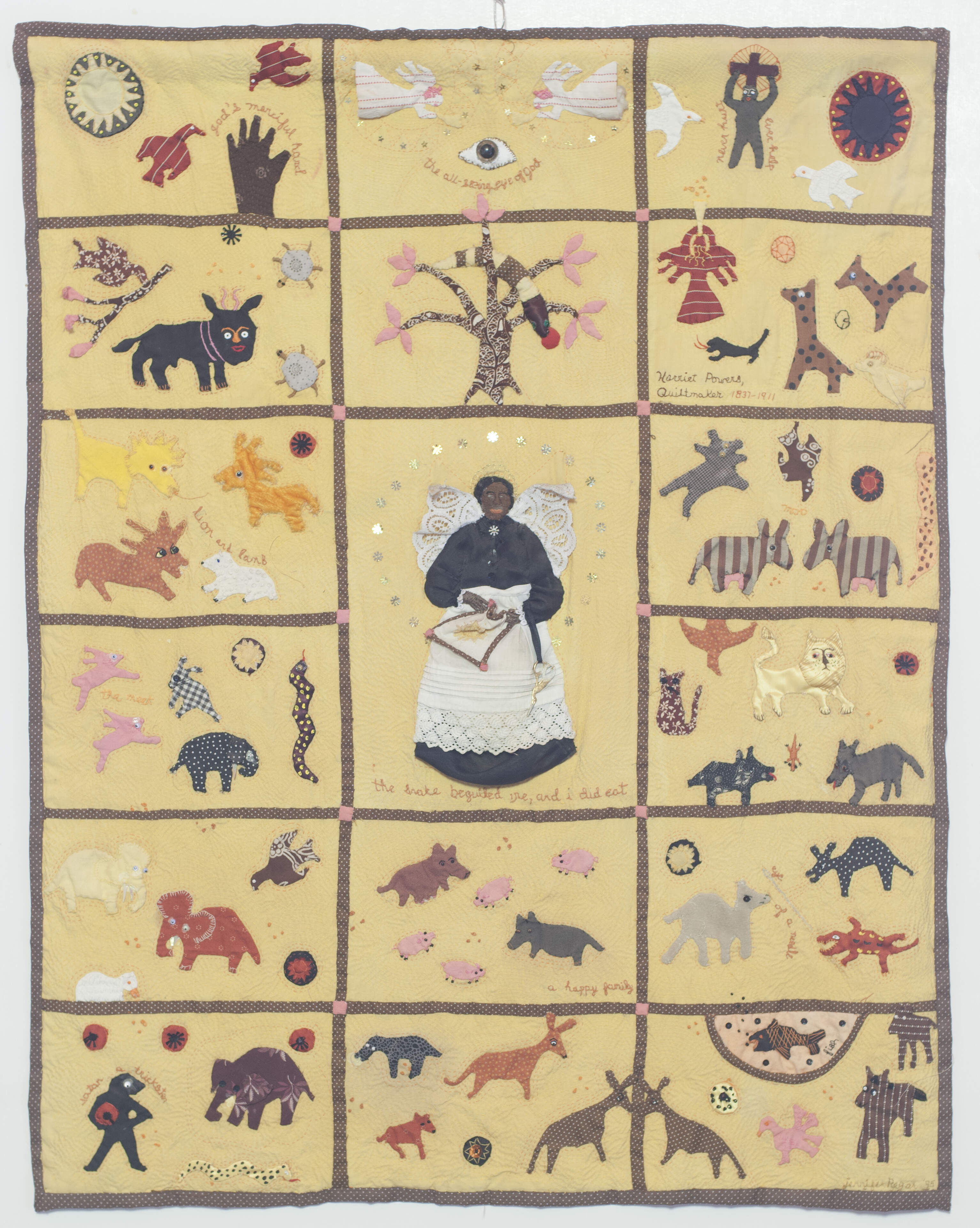 Mixed media on fabric including beads, sequin stars, antique fabrics, Ned’s and Uncle Charlie’s ties, scissors