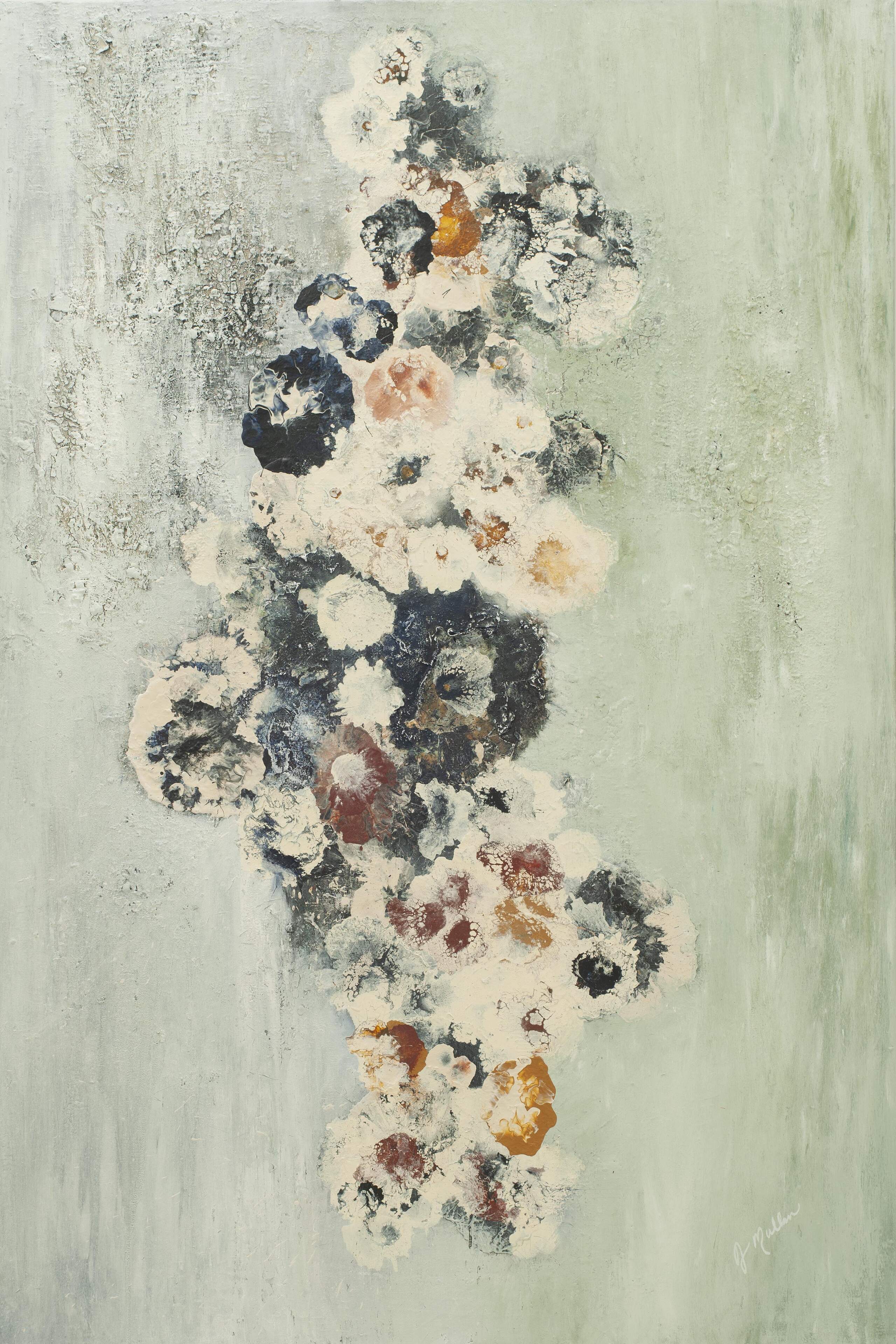 lime plaster, ground glass, copper oxide, indigo, chalk, and acrylic paint on canvas