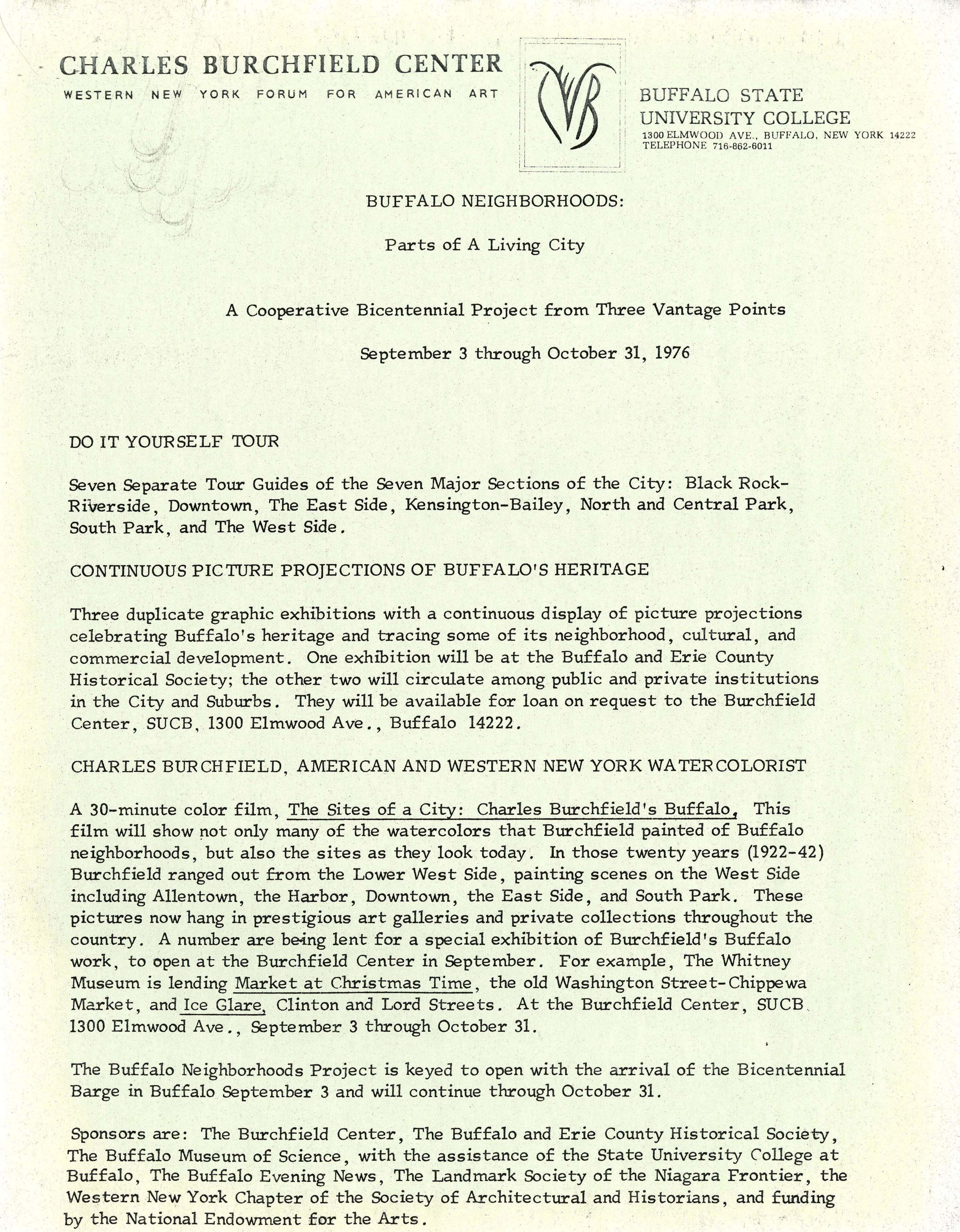 "Buffalo Neighborhoods: Parts of a Living City", Exhibition Outline, 1976