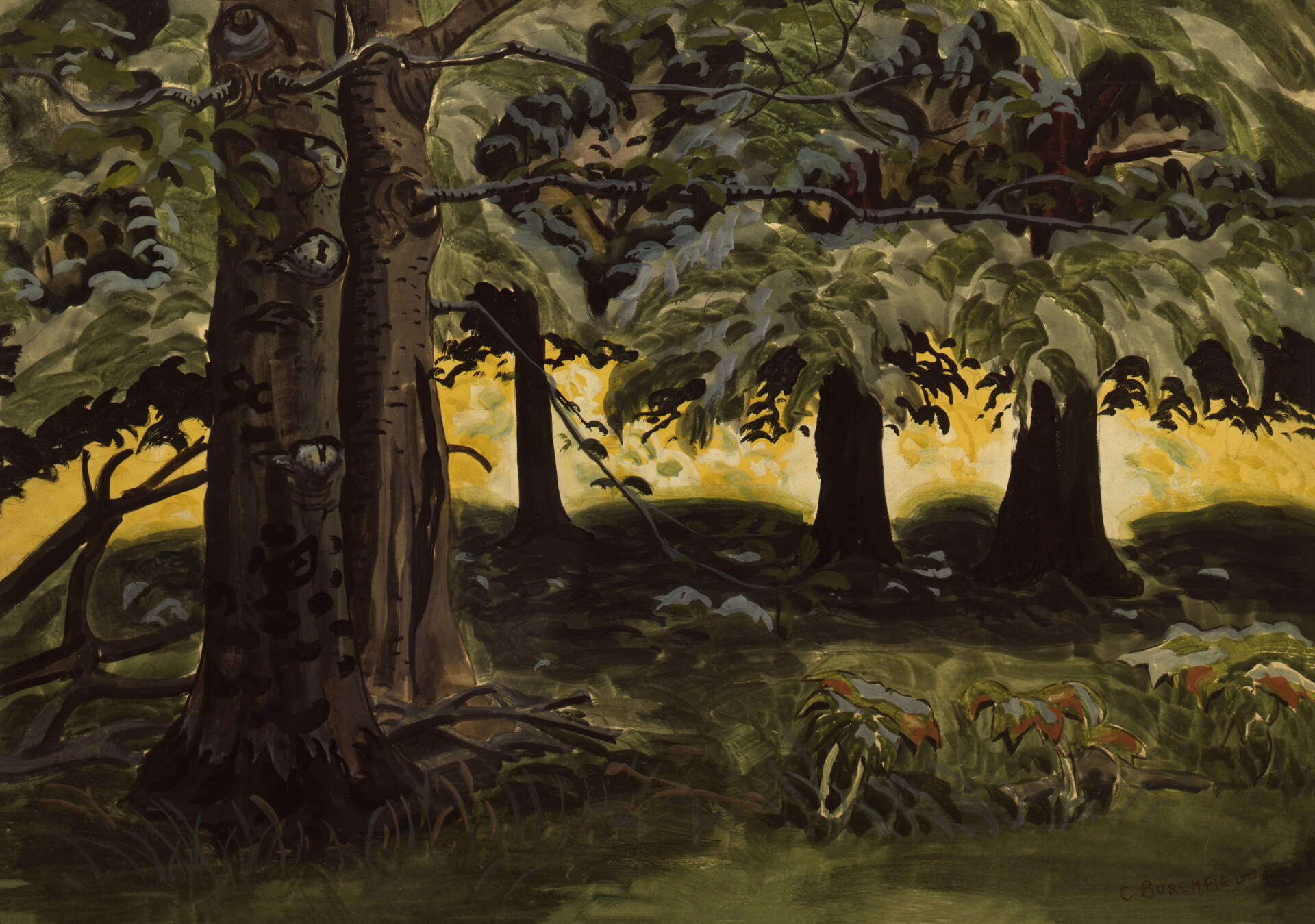 Sunlight Coming Through a Woods (Green Lands with Two Trees)