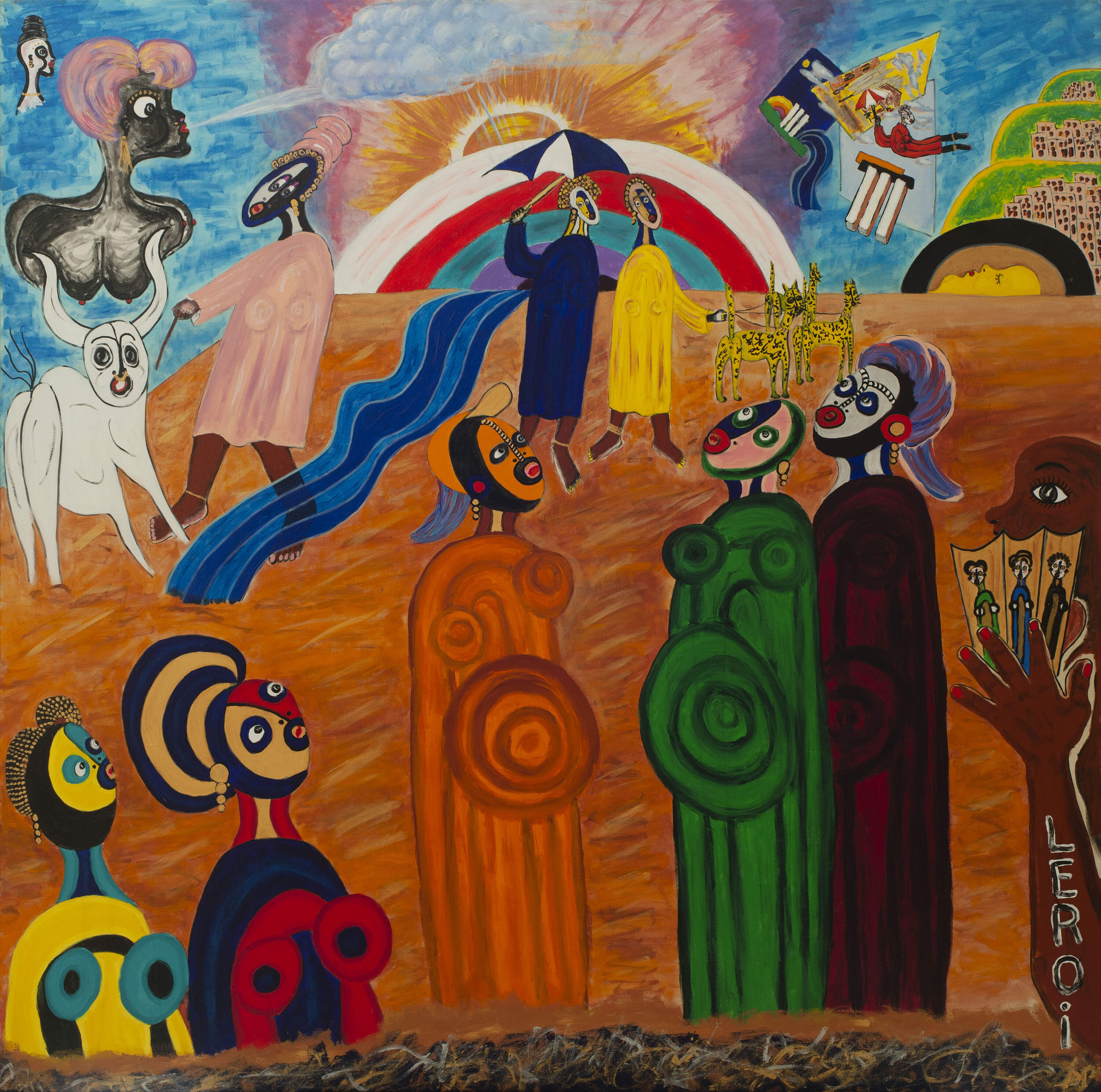 LeRoi Johnson is inspired by all he encounters in the world around him. Describing his work as “electric primitive,” his vibrant compositions are internalized and abstracted reflections on personal experiences. With an international artistic presence, Johnson’s influences span across continents. Central to his work are bold, bright colors as well as African, Caribbean, and South American cultural influences depicting dreams, visions, African ancestry, and various otherworldly elements.