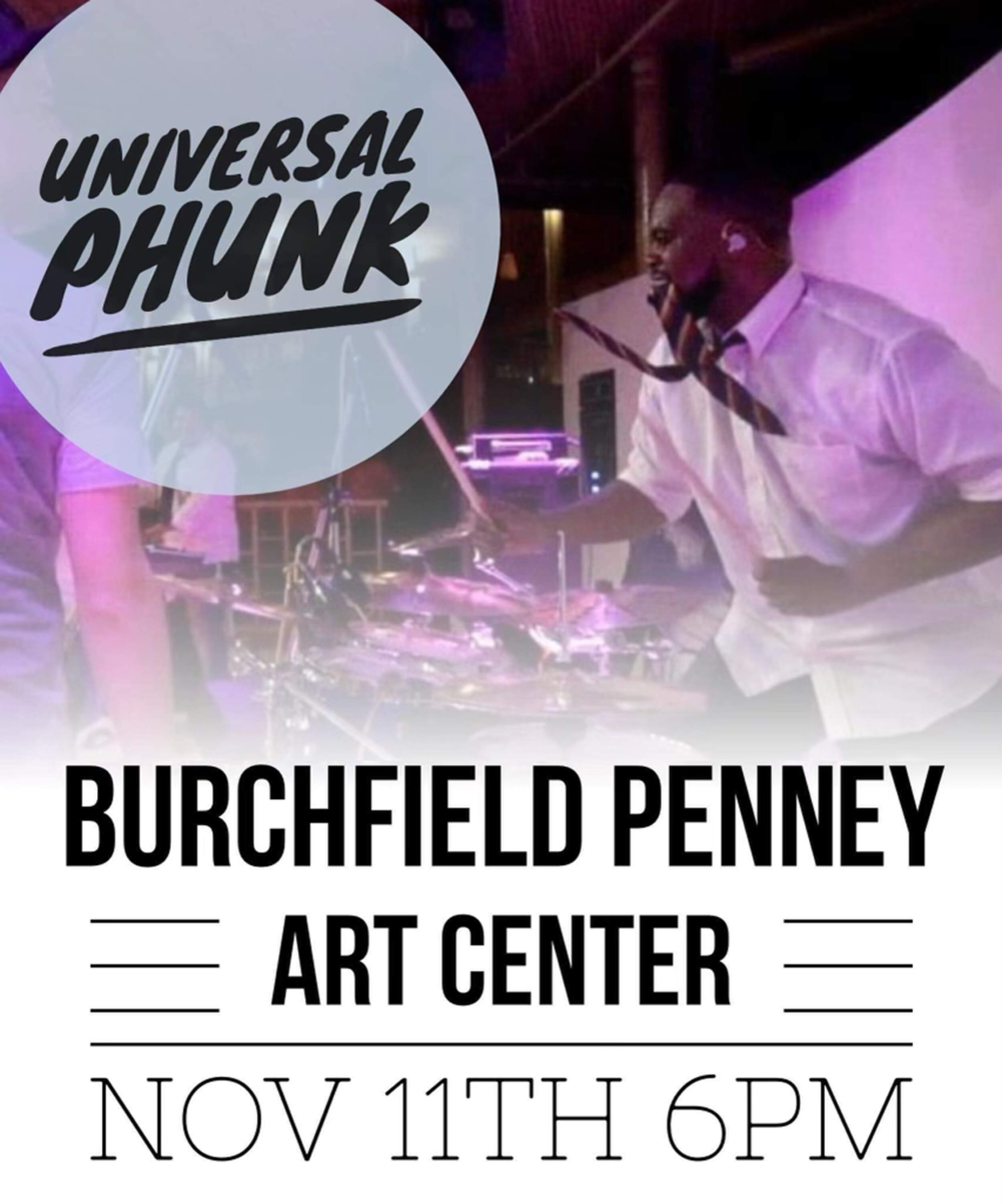 Tonight's event will open with a percussion performance by Tashama led by Synyer Hanesworth, leading into the galleries. Then, Universal Phunk, led by Deshawn Ray Jackson, will have you on your feet and dancing up in the reception space at 6:00 pm!