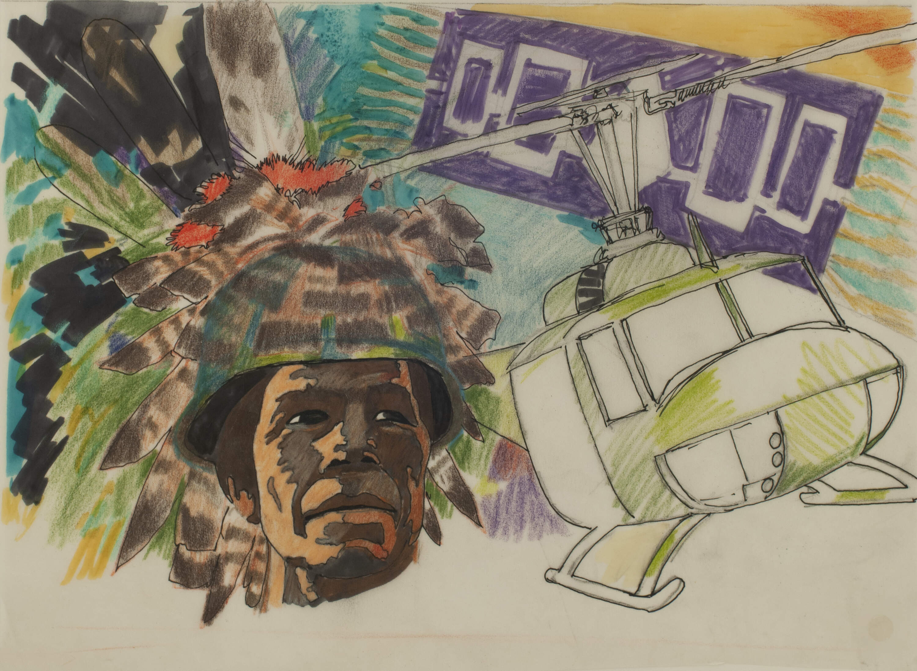 Carson Waterman (Snipe Clan, Seneca Nation, born 1944), Study for Haudenosaunee in Vietnam, ca. 1995, mixed media on paper, Courtesy of the Artist