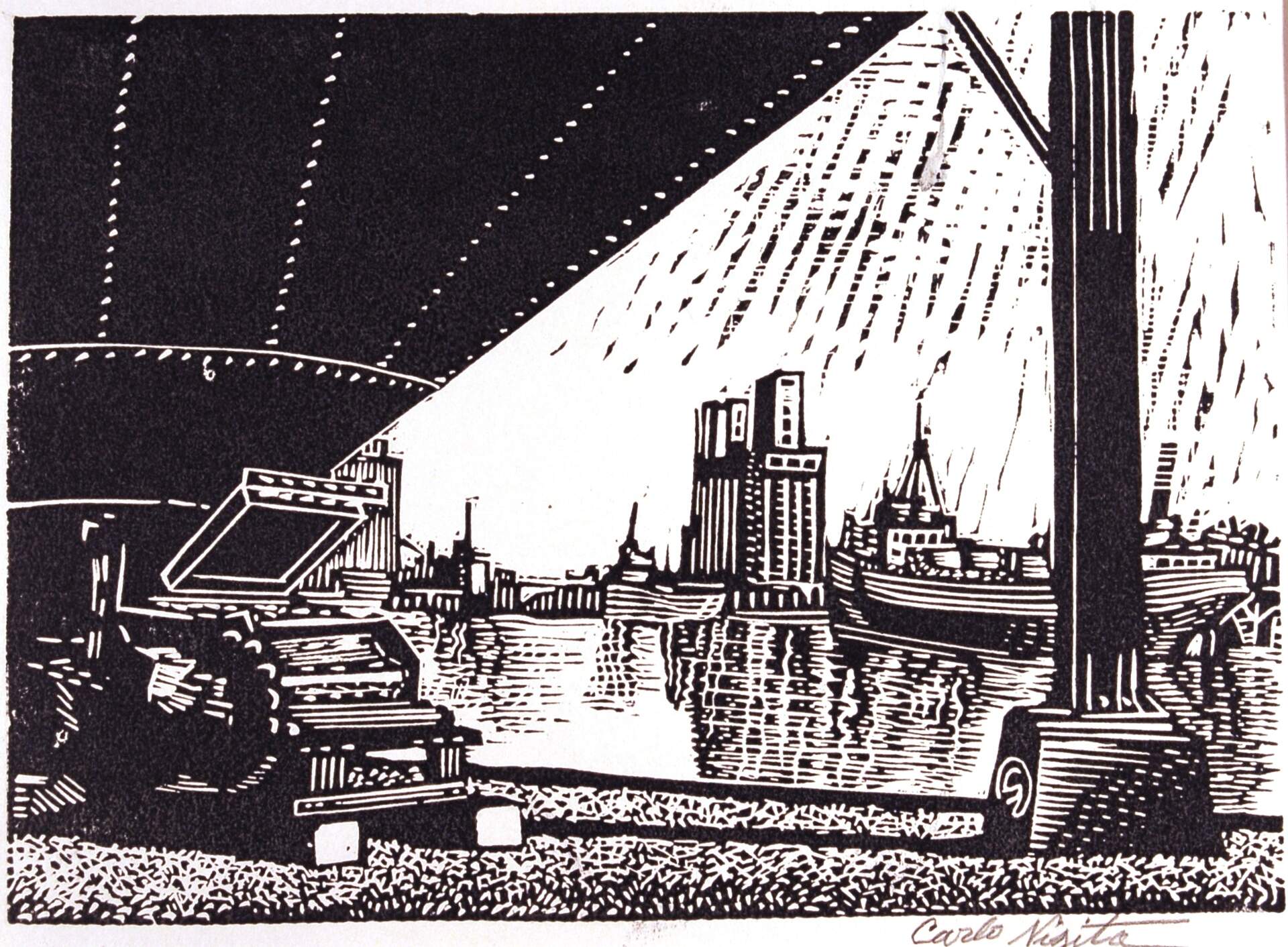 Carlo Nisita (1895-1990), Buffalo Harbor, 1950; linocut, 6 7/16 x 9 inches; Gift of Vern Stein, 1991