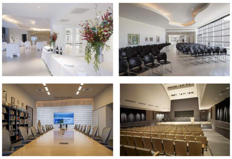 Explore our unique offerings, including stunning indoor and outdoor event spaces, meeting rooms, a 150-seat auditorium, gallery access, guided tours, professional audiovisual & technical support, and top-notch catering partners.
